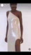 A halter silk charmeuse gown featuring an asymmetrical cowl bodice with a pleat detail wrap skirt that opens into a high slit.