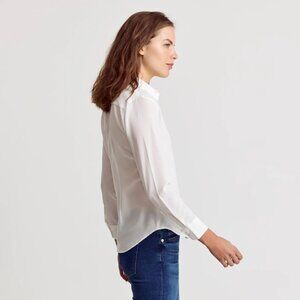 Tailored yet languid. The Signature Shirt in our drapey fabric is the gold standard for luxe simplicity. This fabric has a crepe-like pebbly texture and resists wrinkling. The Signature Shirt is a slightly loose fit, in the way a silk shirt would skim the body.