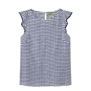 Fashioned from silk twill, this flutter-sleeved blouse in navy Ocean print is perfect for summer. Each sleeve is tipped with solid navy silk.