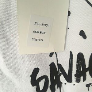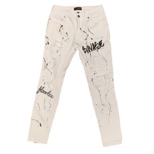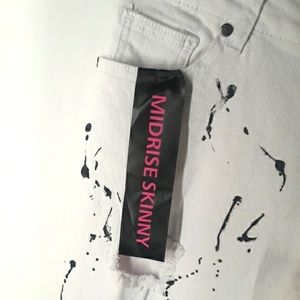 THE STYLE BETWEEN US Black Graffiti Splatter Paint Distressed White Jeans 7/8