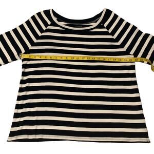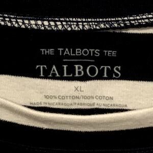 THE TALBOTS TEE in size XL. Striped Top Pullover with Raglan 3/4 Sleeves. 100% Cotton. Black and White. Good pre-owned condition.