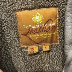 THE TERRITORY AHEAD Men's Large Brown Long Leather Coat Sherpa lined