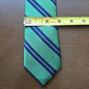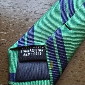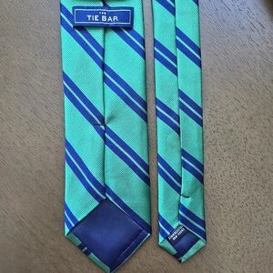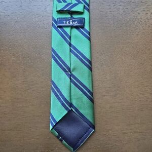 THE TIE BAR Necktie Mens Silk Green Navy Repp Tie Stain Resistant Career Preppy