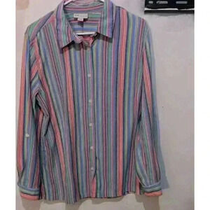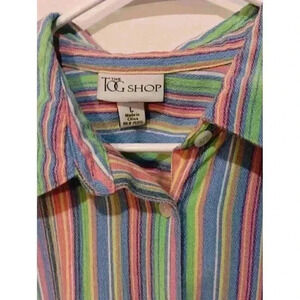 THE TOG SHOP Ladies Sz L Button Down Casual Shirt Pastel Colored Stripped