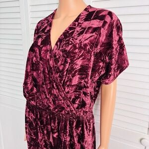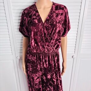 THE VANITY ROOM Burgundy Crushed Velvet V-Neck Jumpsuit Size XL