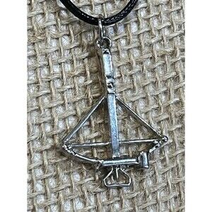 The product is a pendant necklace featuring Daryl Dixon from The Walking Dead series. The pendant is rhodium plated and comes on a cord that can be worn at a variety of lengths between 16in and 18in. This necklace is a unique collectible item that combines charm with a touch of edgy style, perfect for fans of the popular TV show.