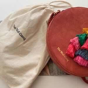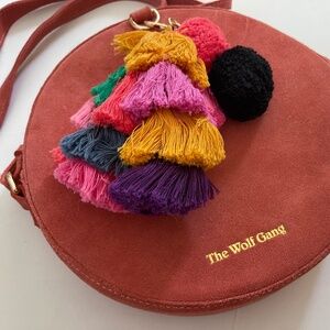 THE WOLF GANG Dark Pink Suede Round Crossbody: Detachable Tassel: Excellent Condition