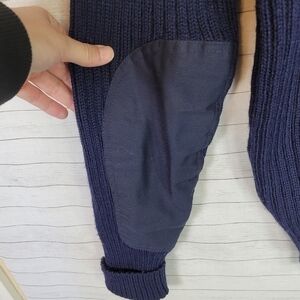 THE WOOLY PULLY MILITARY STYLE 100% WOOL SHOULDER PATCH SWEATER NAVY, SZ LARGE