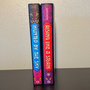 New, unread hardcover copies of both books in the Wrath of Ambar duology by Tanaz Bhathena, Hunted by the Sky (2020) and Rising Like a Storm (2021) Published by Farrar Straus Giroux, New York. Hardcover with original dust jackets.