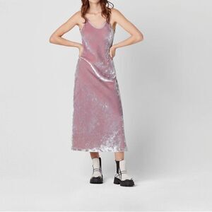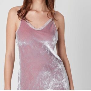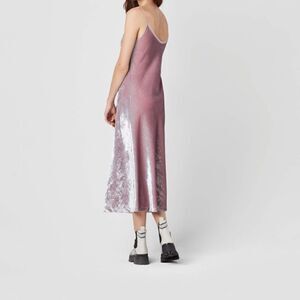 Plush and supple double-dyed velvet, cut on the bias to mold to your body. The raw cut crepe de chine along the neckline adds grungy detail to this luxurious style