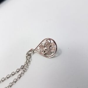 Silver tone Reconstituted Resin Turquoise Cabachon Necklace. The necklace measures approximately 17.5" long with the pendant about an inch. It has a spring clasp cloaure. Comes in blue gift box.