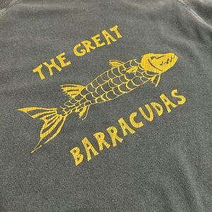 Features a gold “Barracudas” graphic across the front, raglan sleeves, and a perfectly lived-in washed green color.