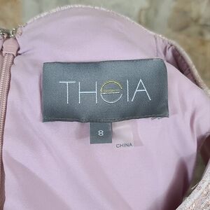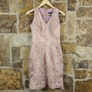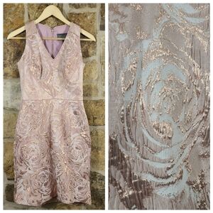 Beautiful pink metallic floral brocade dress from Theia, women's size 8. Excellent condition!