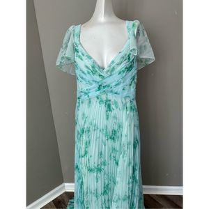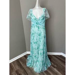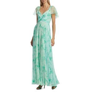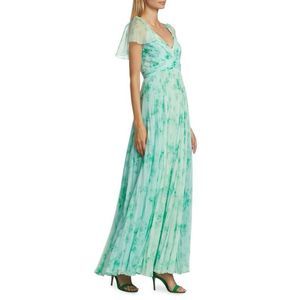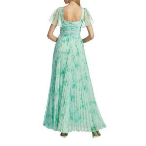 THEIA Alani Pleated Flutter-Sleeve Gown