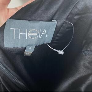 Theia Couture Metallic Blue Gold Jacquard Floral Short Sheath Cocktail Dress 4