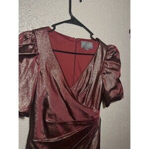 THEIA Mya Lurex Stretch jaquard v-neck midi dress with short sleeves Sz 6