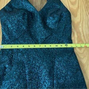 THEIA Turquoise Sparkly Mini Dress Women’s SIZE 2 Mesh Accented Back