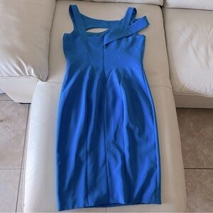 Theia Womens Zip Back Asymmetrical Neck A-Line Cocktail Dress Blue Size 10
