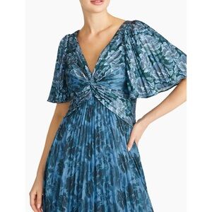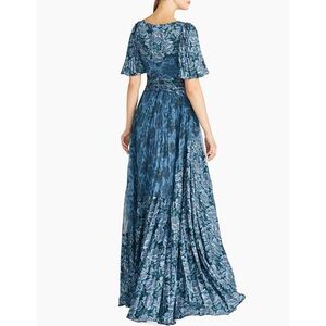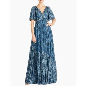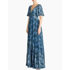 THEIA blue Pleated A Line Gown NEW