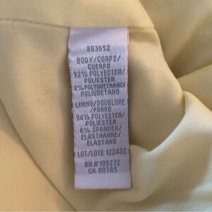 THEIA light yellow asymmetric midi ruffle hem dress. Billowing asymmetrical ruffles romance this sunny Theia dress that flutters with every step.