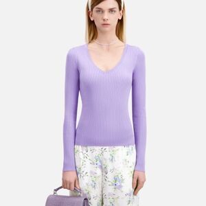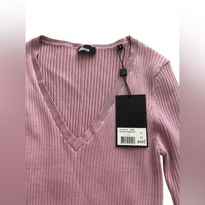 Soft pink stretchy knit sweater! Soft, comfortable and flattering on.