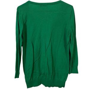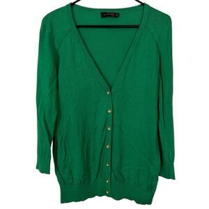 This classic green cardigan from The Limited features a V-neck design and a lightweight knit fabric, making it an ideal layering piece. Its vibrant color and mid-hip length offer a versatile style that complements any wardrobe.