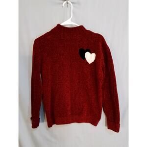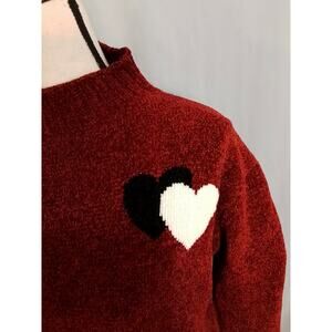 THEMADNESS COMMRECONCO Red sweater with black and white hearts.