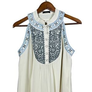 THEME Sleeveless Shirt Mini Dress Casual Button Front Top Blouse Tunic - M