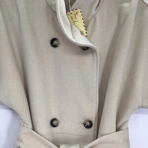 THEME Women’s Double Breasted Belted Vest Overcoat Stand Collar Ivory NWT Size M