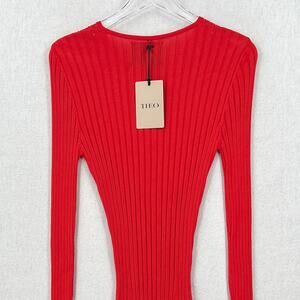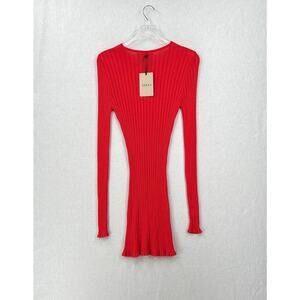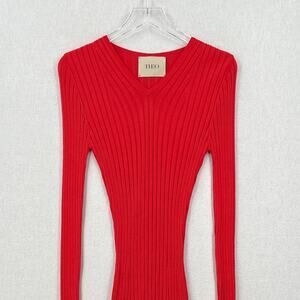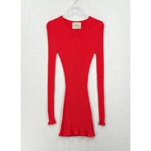 THEO THE LABEL EOS Short Ribbed Long Sleeve Dress Women Small Red Vneck Knit NEW