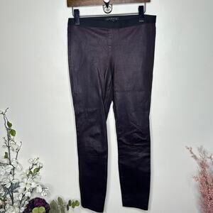 THEORY 100% Lambskin Leather Maximus Leggings Deep Plum Sz 8 {3X21}