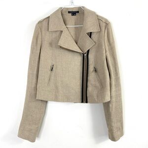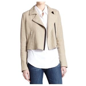 THEORY 100% Linen Mono Biker Jacket in Natural Beige Size M