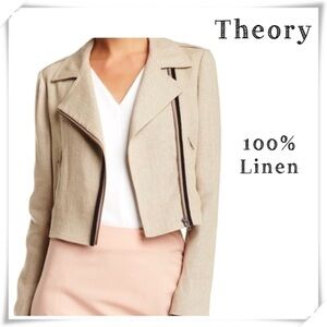 Theory 100% Linen Mono Biker Jacket in Natural Beige