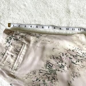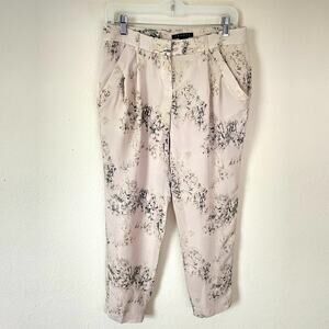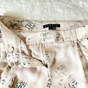 THEORY 100% Silk Ivory Floral Relaxed Chino Tapered Pleat Pants Spring Size 6