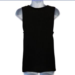 This so soft and flowy silk tank features side slits at bottom hem, sleeveless vneck with a side strap detail.