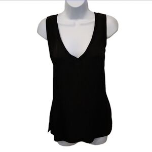THEORY 100% silk side slit V neck cutout top