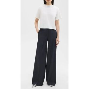 THEORY 62% Linen Blend Black Pants Mid Rise Wide Leg Trousers