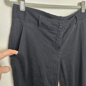 THEORY 62% Linen Blend Black Pants Mid Rise Wide Leg Trousers Size 10