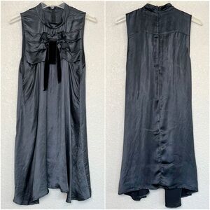 THEORY 70s Satin Ruffle Front Velvet Bow Sleeveless High Neck Babydoll Dress 6