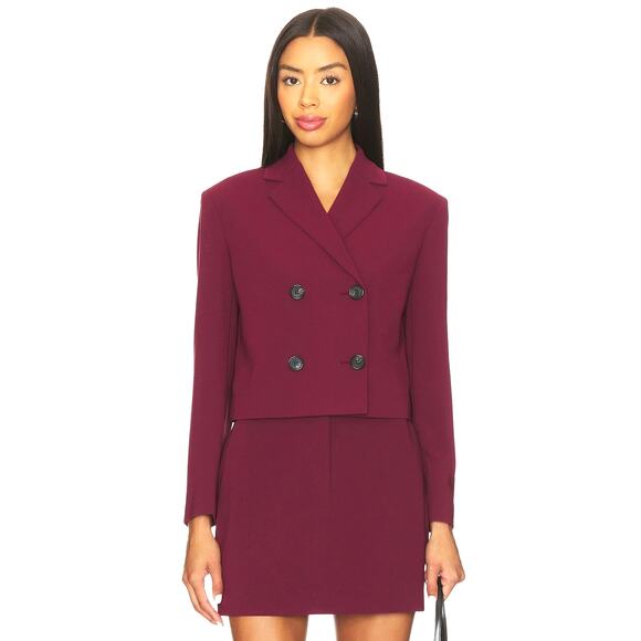 THEORY Admiral Double Breasted Crop Jacket in Grenache