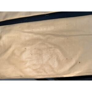 BEAUTIFUL SOFT BEIGE LEATHER JEANS FROM THEORY IN SIZE 6. MADE IN ITALY. MEASUREMENTS IN PHOTOS. WIDE LEG, SLIGHT FLARE (SEE FULL LENGTH PHOTO) . THESE NEED CLEANING AS THERE ARE A FEW SPOTS BUT ARE OTHERWISE IN EXCELLENT CONDITION. I HAVE THE SAME PAIR IN OFF WHITE LISTED SEPARATELY.