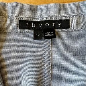 THEORY BLAZER 12 LINEN BLEND CAREER CASUAL PREPPY 2 BUTTON DRAPED PACTCH POCKETS