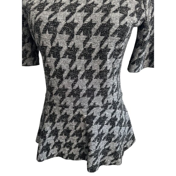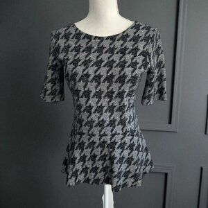 THEORY Black Gray Houndstooth Peplum Stretch Top Size Medium