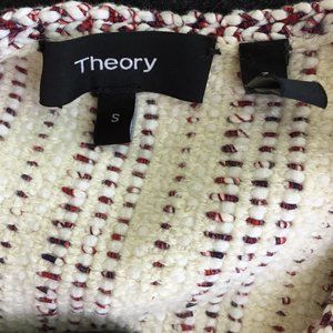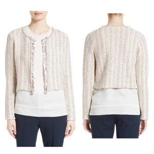 THEORY Boucle Knit GALINNE Cream Dark Red White Fringe Cropped Jacket