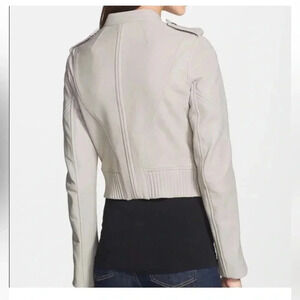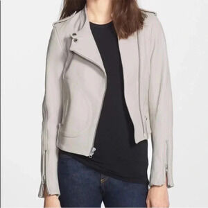 THEORY Browsal Katiana Cropped Leather Jacket in Grey Chino $1,295