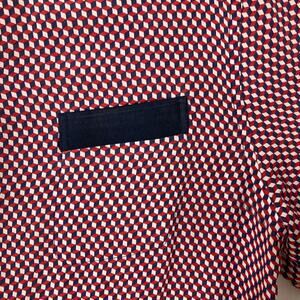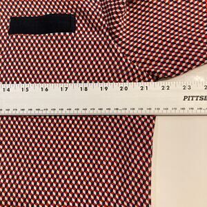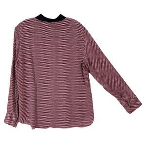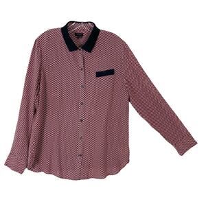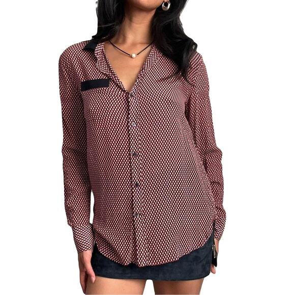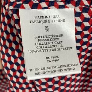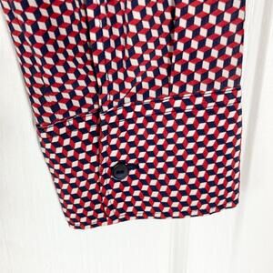 THEORY Button Shirt Women XL Silk Multi-Red Geo-Print Pocket Long-Slv “Rogene”