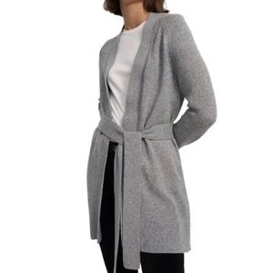 THEORY Cashmere Malinka Belted Cardigan Sweater Husky Gray Knit Size P X-Small