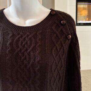 THEORY Classic Heather Brown Cable Knit Sweater Sz L