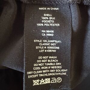 Made of 100% Silk Georgette, this classic black jumpsuit features a wide-leg design, pockets and 3/4 sleeves, perfect for any occasion from casual to formal.