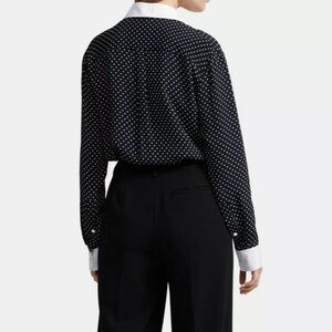 THEORY | Contrast Straight Shirt in Polka Dot Crepe